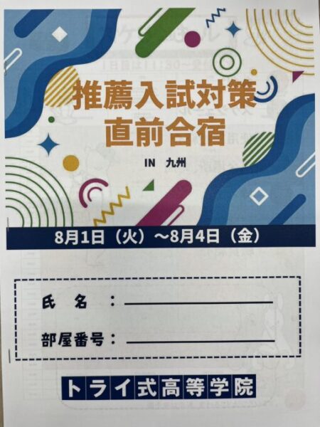 8月1日~8月4日で推薦入試対策直前合宿が福岡にて行われます!