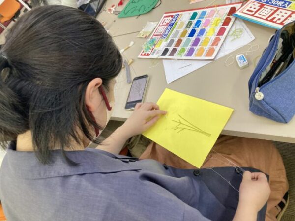 まずは、どの色の画用紙に刺しゅうするか、どの色の糸を使うか、