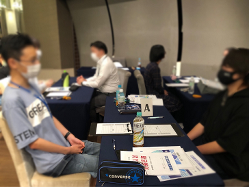 夜は、事前に配られたワークシートを使って面接で話す内容を考えつつ、グループごとに面接練習を実施しました!