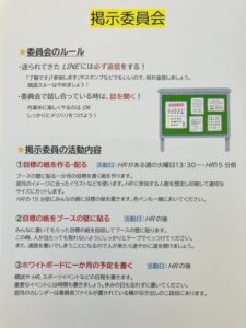 先月末のホールームの後に行っている委員会活動の