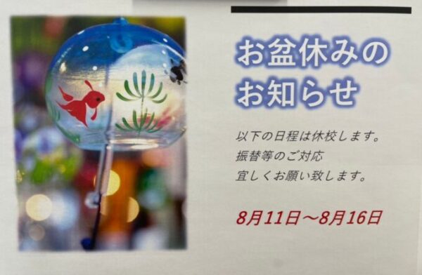 今回のブログは少し早いですが、8月のお盆休みについての案内です!