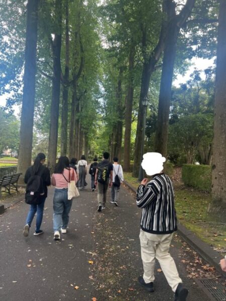 公園には並木道や大きな池があり、少し涼しかったです!