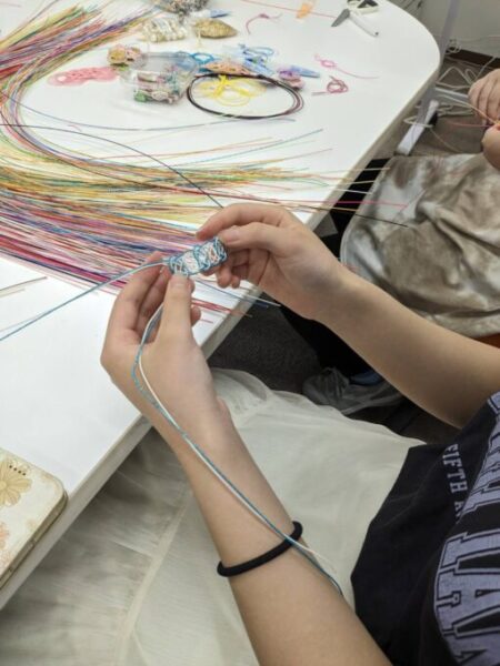 まず初めに、あわじ結びの練習をしました!