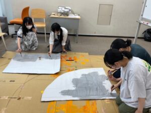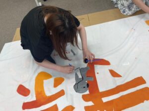 みんなで下書きをして、現在は絵の具で着色を始めています🖌