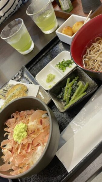 ご飯の上に鰹節を乗せ、すりおろしたわさびをトッピング。そこに醤油をかければ完成🌷