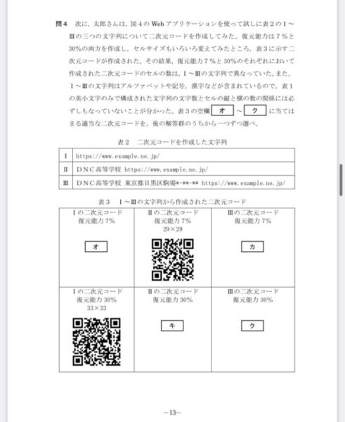 ▶︎情報を読み取り、正しい二次元コードの作成を選ぶ問題点があったり・・・