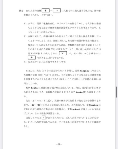 ▶︎お金の計算に関する関数が問われ、プログラムを組む操作を答えさせられたり・・・