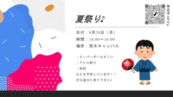 ということで、去年に引き続き「茨木キャンパス夏祭り」を開催することに決定致しました👏