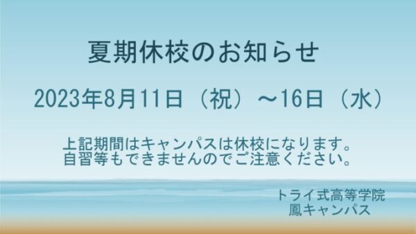 明日、8月11日(祝)~8月16日(水)の期間は夏期休校となります🍉