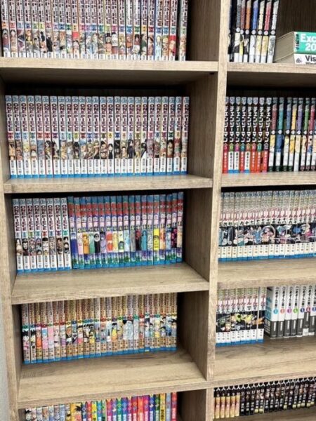 スタッフたちが提供した約350冊のマンガが並びます。