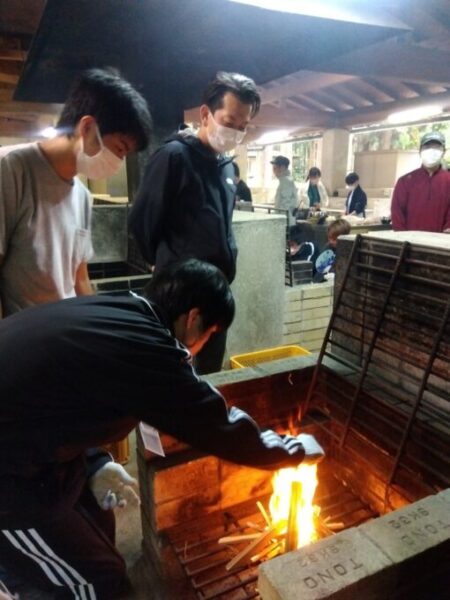薪割や、火起こし、下ごしらえや後片付け…全員で力を合わせてどの班も
