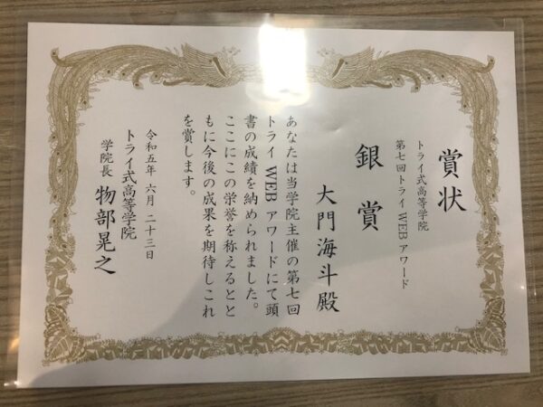 今回は、トライ式高等学院主催 第7回 トライWEBアワードにエントリーしてくれた、千葉キャンパス2年生の大門 海斗君について、ご紹介したいと思います。