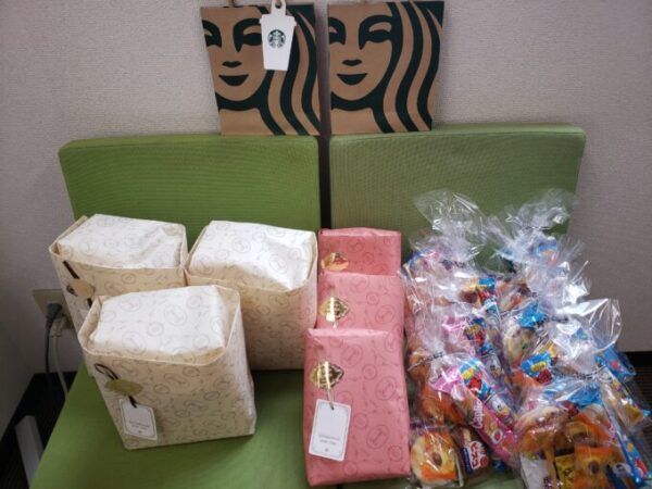 最後にはそれぞれの種目の合計得点が高かった生徒さんからくじを引き、お菓子やスタバカードの豪華なプレゼントがありました!!
