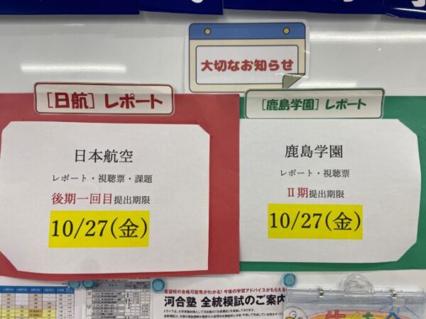 後期のレポート・視聴票の〆切が出ました!