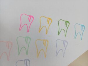 歯です🦷たくさんの色でペタペタ捺すとかわいいですね💓