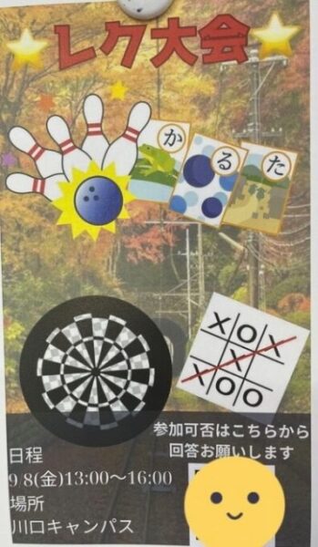 本日は9/8(金)に川口キャンパスで行われるレクレーション大会についてのお知らせです。