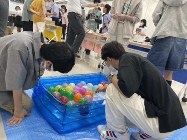 武蔵小杉キャンパスのブースでは、輪投げと水ヨーヨーを出しました!