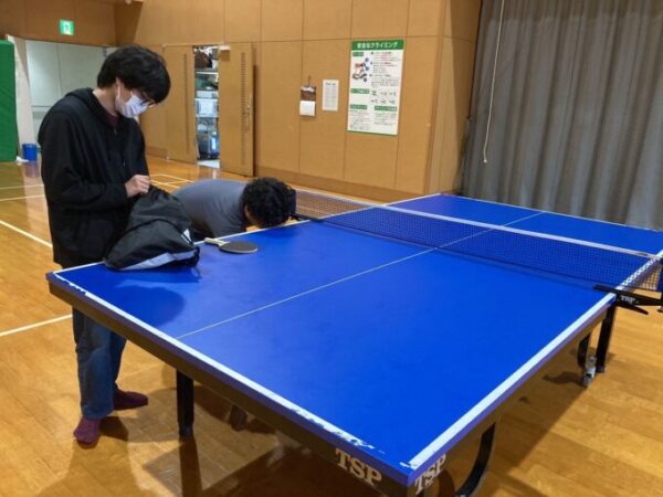 「今日は少ないなら、卓球台1台でいいよね~」とおしゃべりしながら、準備を始めました。