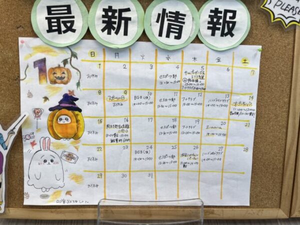 毎月キャンパスのカレンダーは、卒業生の学生スタッフが可愛く仕上げてくれます★