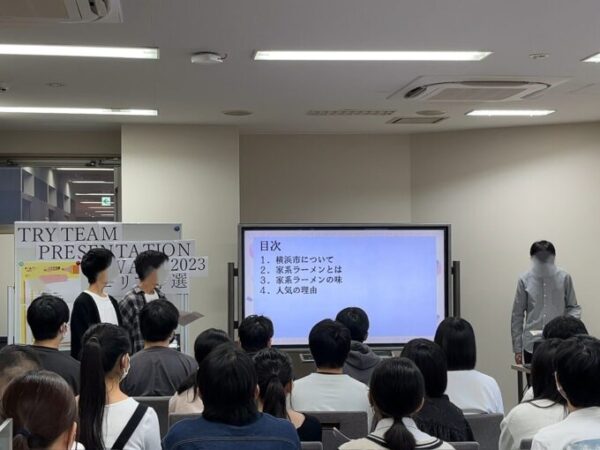 初めてチームプレゼンに挑戦した生徒達。