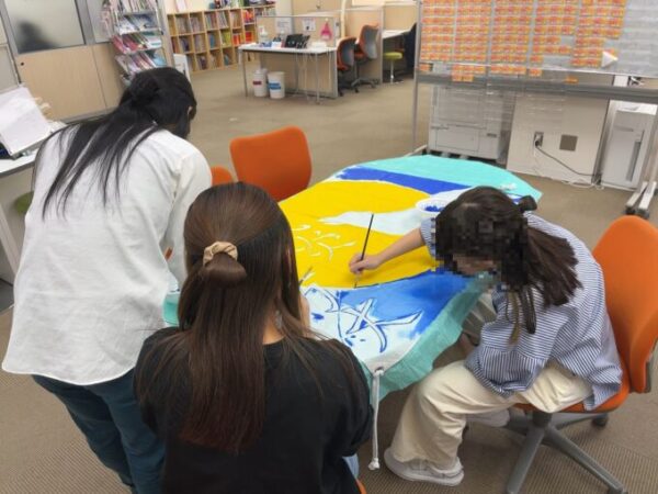 実行委員の生徒を中心に、デザインを考え、お手伝いをしてくれる生徒達みんなで色を塗りました。
