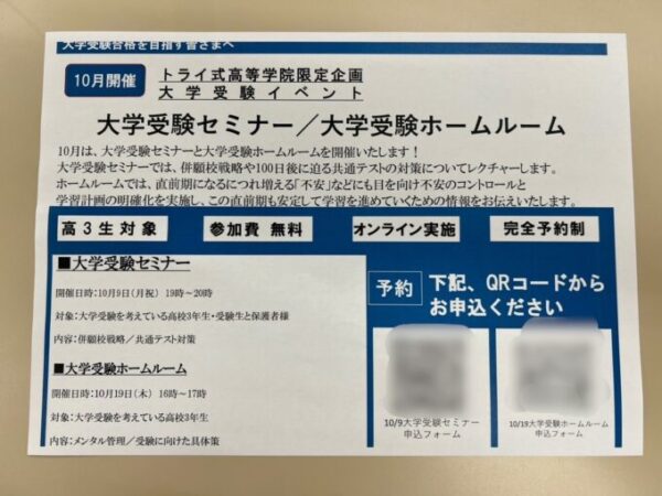今回は大学受験ホームルームのご案内です。