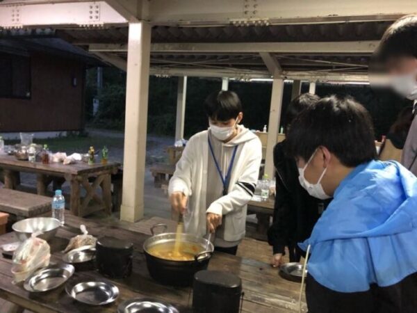 グループごとで手作りしたカレーは、ご飯が上手く炊けずカチカチだったそうです😂