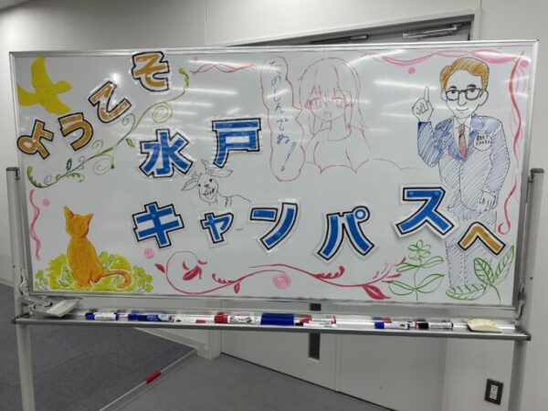オープンキャンパスが始まる前の10時頃、生徒たちは朝早く来て、ホワイトボードをウェルカムボードへと変身させていました!