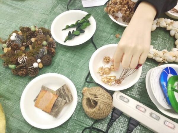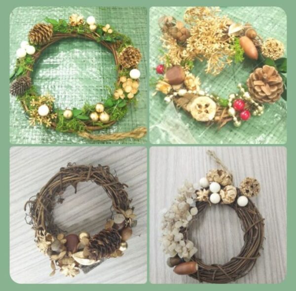 今回は私の趣味でもあるリース作りをしてみました♪ 庭でどんぐりや栗を拾って材料を用意し秋っぽいカラーとフレッシュなグリーン系どちらかを選べるようにしました😊