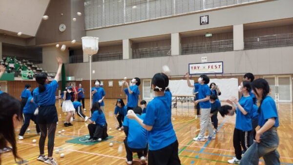 2メートル以上ある大きな大玉に最初はびっくり😲な生徒でしたが