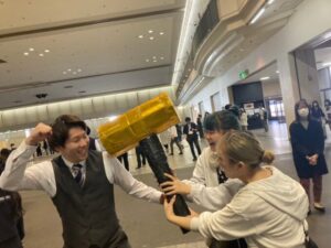 脱出ゲームの小道具でキャンパス長とはしゃぐ生徒の様子も見られました👀