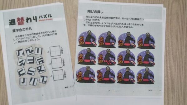 今回のスマイル講座でパズルにチャレンジしてもらったのですが、配布した瞬間正解を言い当てられて正直びっくりしました!この左側の『漢字合わせ札』です。バラバラになっている漢字を組み合わせてしかも単語にするというハードな内容。私、ハサミ✂を人数分用意したんですけど…(゚Д゚;)