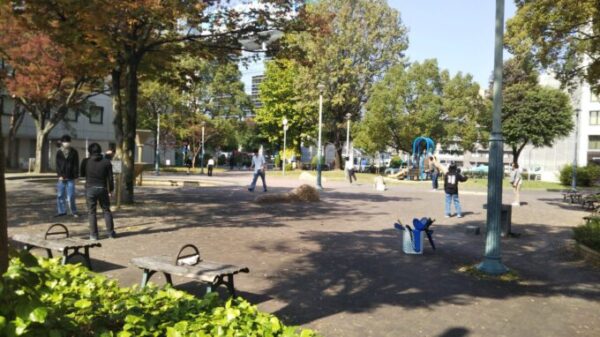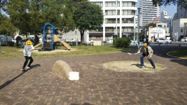 いつも通りがかる公園 そのうちみんなと遊びたいなぁと思っていたので暑すぎず寒すぎない今日を選んでよかったです。まさにバドミントン日和!🏸この時公園を見渡すと公園内人口の95%は千種キャンパスのメンバーでした笑