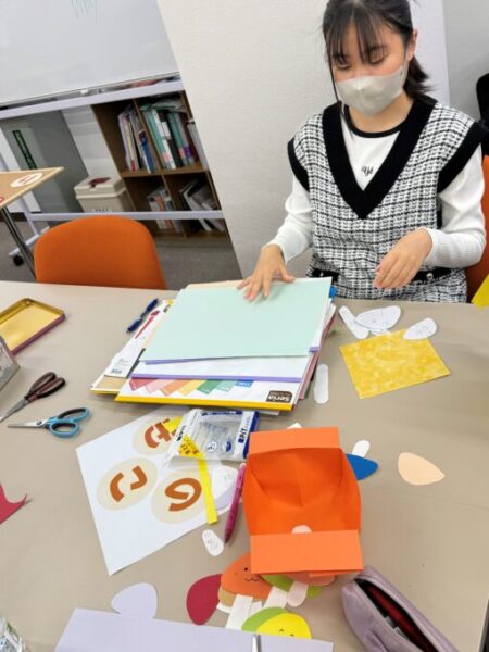 カラフルな画用紙を使って華やかな装飾を目指します!