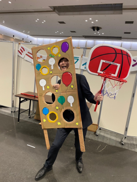 各キャンパスごとに模擬店を出店したのですが、茨木キャンパスからは「ミニゲームトライアスロン」を出店しました!