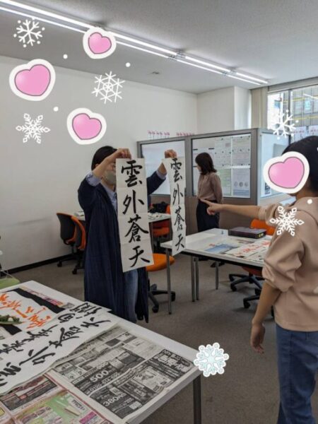 先生がご指導いただいているのは、なんと「書初め大会に向けての練習!」です。