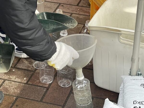 あらかじめペットボトルに砂をつめる活動です🌟