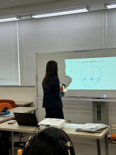 続いてワークシートを使って、立方体から顔を書くという課題♪
