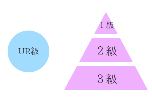 「色彩検定」は、4つの級に分かれています。「UC級」「3級」「2級」「1級」です。