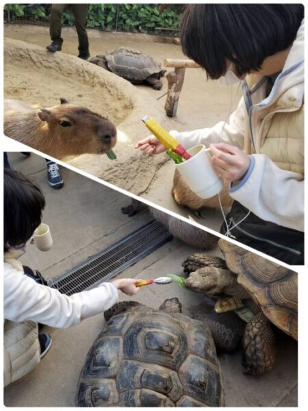 カメやカピバラに葉っぱのごはんをあげていました🍚