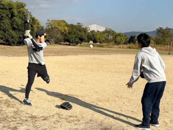 野球経験のある生徒がノッカーとして,そしてキャッチャーとして