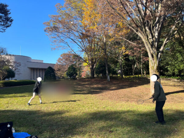 みんなでピクニックをしながらお話したり、バドミントンをしたりと