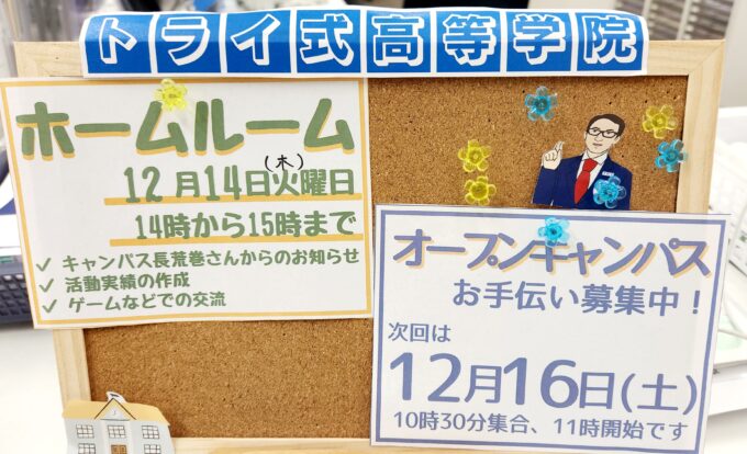 蒲田キャンパスでは、ホームルームにオープンキャンパス、クリスマス会も予定しています。そしてお楽しみ体育祭もありますね!2023年最後まで駆け抜けていきましょう!