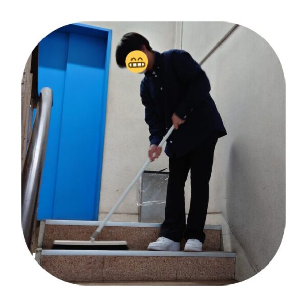 今回は普段通学時に利用している階段やエレベーター、周辺の歩道を清掃することで