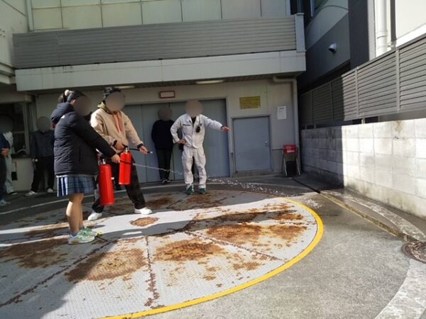 また、消火器の使い方の実践演習を行いました!