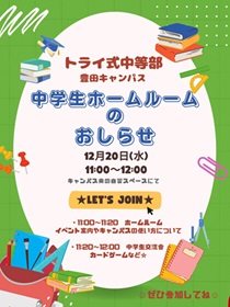 さて、毎月恒例の中学生ホームルーム&交流会ですが、今月も開催します💙💛💚
