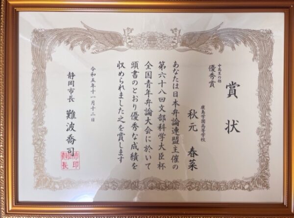 千葉キャンパスの高校3年生、秋元 春菜さんが、中高生の部に参加し、見事!!!優秀賞を受賞いたしました🏅🏅🏅