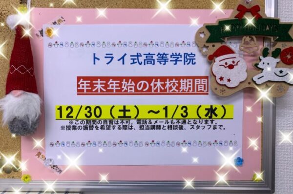 年末年始のため全日休校となります。