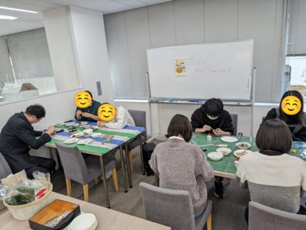 スマイル講座は11時から12時の1時間。なんとか作品も仕上がりみんなでカンパーイ‼