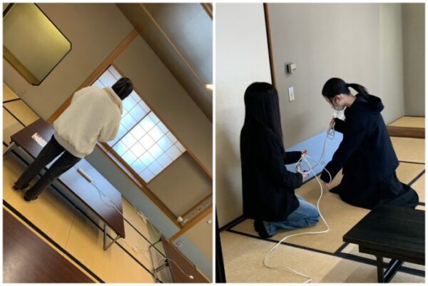 今回はキャンパスから徒歩5分の場所にある『岐阜市文化センター』の茶室付和室で行いました。しめ縄作りにぴったりの会場ですね😉